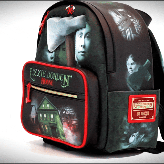 Inspired by the infamous 1892 Fall River case, The Lizzie Borden Collector’s Backpack: Hatchet Edition is a gothic tribute to one of America’s most chilling true crime stories. Designed for fans of paranormal history and horror fashion, this structured mini backpack blends eerie visuals with practical features for everyday use or haunted adventures.